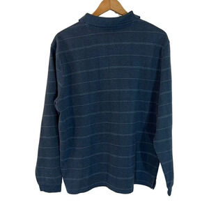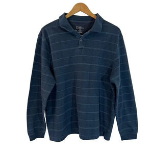 This Van Heusen Flex shirt is a must-have for any man's wardrobe. With a classic fit and long sleeves, it's perfect for both casual and workwear occasions. The collared neckline and pullover closure add a touch of sophistication, while the blue striped pattern and button accents give it a stylish edge. Made from a soft knit fabric blend of polyester and cotton, it's comfortable to wear and easy to care for with machine washable instructions. This shirt is unlined and fits true to size in XL. Ideal for the fall and winter seasons, it's also great for golfing.