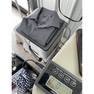 Van Heusen Flex Slim Fit Button Down Shirt Men 16.5/34-35 Black White Officewear