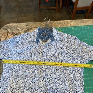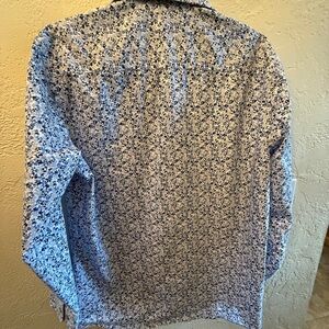 Van Heusen Flex Stretch Men’s Sz L Blue and White Casual Long Button Down Shirt