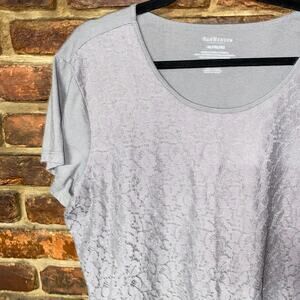 Van Heusen Gray Short Sleeve Lace-Front Blouse Women's Size XL