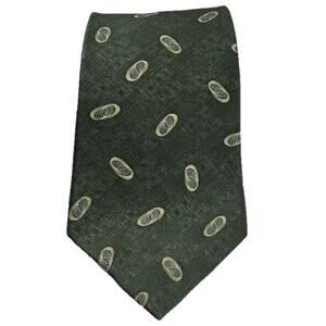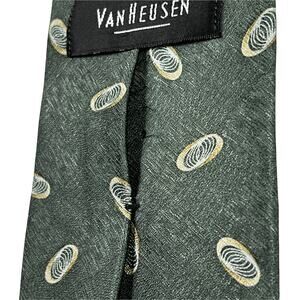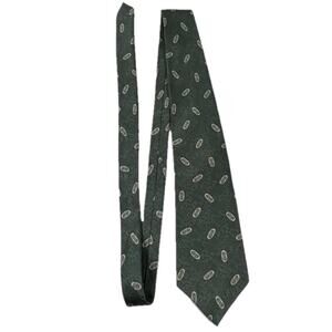 Van Heusen Green Necktie with Cream Geometric Accents 100% Silk