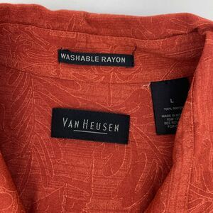 VAN HEUSEN HAWAIIAN SHIRT MEN SIZE L FLORAL CAYENNE RED WASHABLE RAYON BUTTON UP
