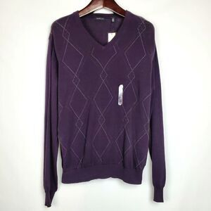 Van Heusen L Purple Argle V-Neck Sweater
