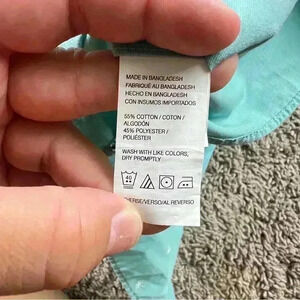 This Van Heusen dress shirt is a perfect addition to any wardrobe. With a stylish palm tree pattern and a collared neckline, it's suitable for a variety of occasions, from parties to formal events. The shirt is made of wrinkle-resistant polyester fabric that is easy to care for, and it comes in a size XXL with a regular fit.