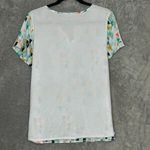 Van Heusen M Medium Shirt Top Blue Geometric Short Sleeve Split Round Neck