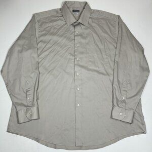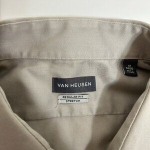 Van Heusen Men Regular Fit Stretch Long Sleeve Button-Up Shirt Tan Sz 18 34/35