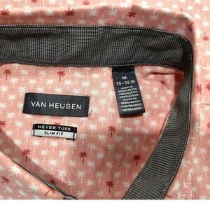 Van Heusen Men Slim Fit Shirt Button Up Tropical Summer Short Sleeve M 15 - 15.5