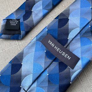Van Heusen Men Tie Blue Tone Necktie 100% Silk Classic Tie