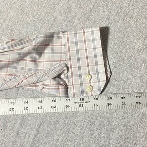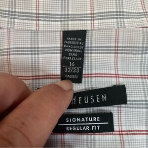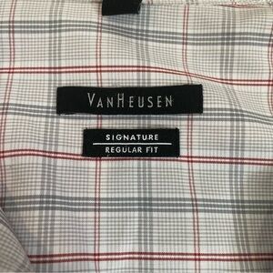 This Van Heusen men's dress shirt size 16-32/33 plaid pattern, long sleeves, and a collared neckline, it's suitable for a range of occasions, from casual outings to formal events and business meetings. The shirt is made from a cotton blend fabric that's machine washable, ensuring easy care and maintenance. Featuring a button-down collar and barrel cuff top style It's an American classic theme shirt with accents that include buttons and a front pocket. Van Heusen dress shirt, men’s 16-32/33 shirt, plaid dress shirt, long sleeve button-down, collared shirt, barrel cuff shirt, cotton blend fabric, machine washable men’s shirt, casual business shirt, formal dress shirt, versatile men’s top, classic American style, front pocket shirt, office wear shirt, professional attire, everyday wear shirt, easy-care men’s clothing, stylish men’s shirt, regular fit dress shirt, timeless men’s fashion.