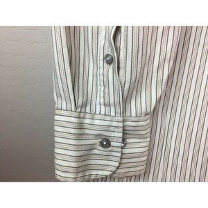 Van Heusen Mens Beige Striped Button-Front Shirt Size 16.5 32/33