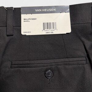 Van Heusen Mens Black Dress Pants 34W 30L Polyester/Rayon