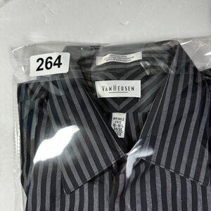Van Heusen Mens Black & Gray Pinstripe Broadcloth Button-Up Shirt L Academia