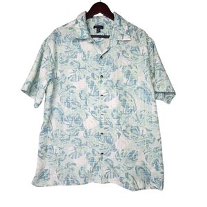 Van Heusen Men's Blue and White Tropical Floral Shirt Short Sleeve Size XL