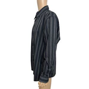 Van Heusen Men’s Button Up Shirt XL Black White Striped 17 - 17 1/2 Cotton Blend