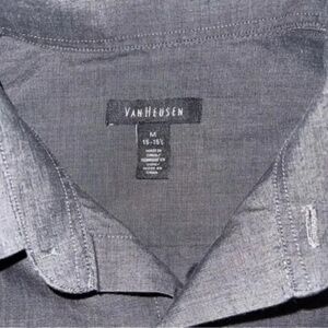 Van Heusen Men's Dark Grey Button Down Shirt Size M 15-15 1/2 Very good used condition No rips, stains, holes or tears 55% Cotton 45% Polyester