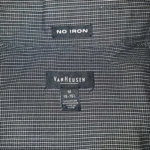 Van Heusen - Black plaid - Men's Dress Shirt - Size = M x 15-15.5 Neck - Item is in good used condition. No holes, tears, or stains.
