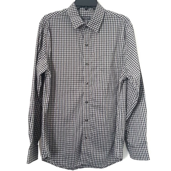 Van Heusen Men's Gray/White Plaid Shirt, Size M