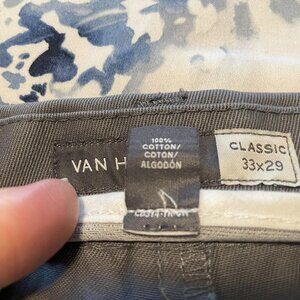 Men's Van Heusen khaki dark grey pants in classic fit size 35 / 29. They are 100 percent cotton. These pants are tagged 33/29, however I measured them to be sure and the waist clearly measures 35 inches, not 33 inches. They do not appear to have been altered so I must assume they were mismarked at the factory. The inseam on the pant leg correctly measures 29 inches. The pants are preowned but in very nice condition. Bundle or "like" two pairs and I will send you an offer for $15.