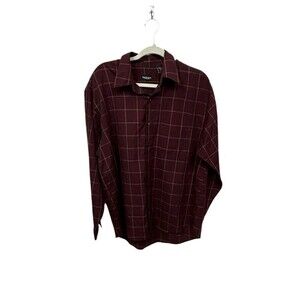 Van Heusen Mens Large Burgandy Plaid Button Up Shirt Long Sleeve 16 - 16.5