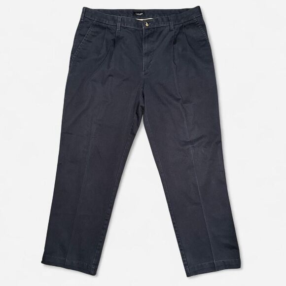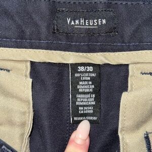 Men’s navy blue Van Heusen pleated trouser pants made from 100% Cotton in size MENS 38x30. Great, gently used condition!