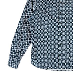 Van Heusen Men's Navy Floral Print Button-Up Shirt M 15-15.5 Long Sleeve