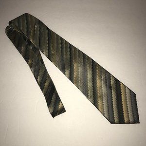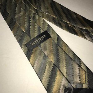 Van Heusen Mens Neck Tie Silk Handmade Metallic Gold Silver Geometric Stripe