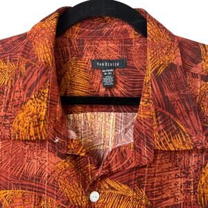 Van Heusen Men's Red + Orange Palm Frond Hawaiian Shirt Size XXL 2X