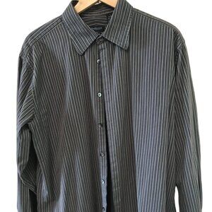 Vintage long-sleeved ridged brown striped button-down shirt, men's size large. This nice Van Heusen shirt from the 90s is in great condition.