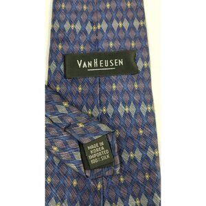 Van Heusen Mens Silk Necktie Blue & Purple Geometric Pattern 58" X 4"