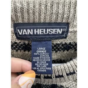 Van Heusen Mens Sweater Size Large Striped Tan Long Sleeve Knit