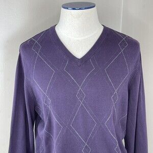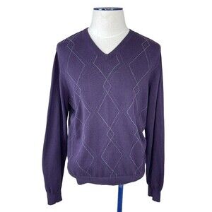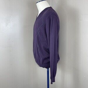Van Heusen Mens V Neck Sweater Argyle Purple Cotton Size Large.
