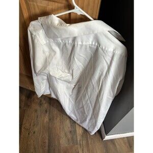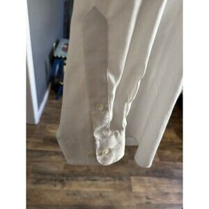 The Van Heusen Men's White Long Sleeve Dress Shirt in size 15 features a classic solid pattern with a collared neckline and button closure. Made from a comfortable cotton blend material, this shirt is machine washable and perfect for formal or business occasions. The regular fit and barrel cuff style offer a timeless and sophisticated look, making it a versatile addition to any man's wardrobe.