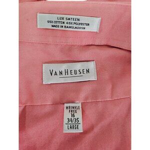 Van Heusen Men's Wrinkle Free Lux Sateen Coral Pink Button Up Dress Shirt in size L is a stylish and comfortable choice for any occasion. Made from a soft and durable cotton blend.
