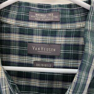 Van Heusen Men's Wrinkle-Free Green Plaid Button-Up Short Sleeve Shirt XXL