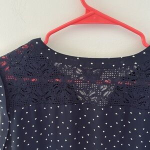 Van Heusen Navy Blue Mandarin Collar V-Neck Blouse with Heart Dots Size M/L