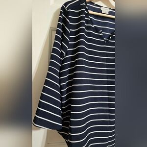 Van Heusen Navy and White Striped Blouse XL 3/4 Sleeve
