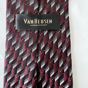 Van Heusen Neck Tie, 100% Silk, Handmade, Dark Red, Gray and Black, EUC