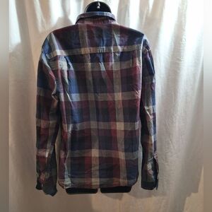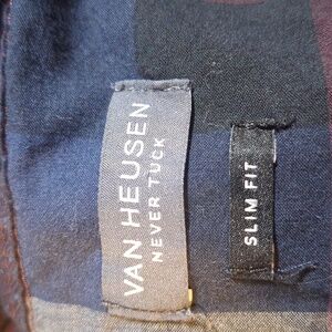 Van Heusen Never tuck slim fit plaid medium button-down. pit to pit size is 22" top of shoulder to bottom hem is 27" Bundle more items for bigger deals Bin-122