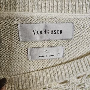 Van Heusen Open Weave Crochet Sweater Womens XL Off White Gold Cotton Blend
