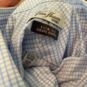 Van Heusen Original Slim Fit Plaid Men Collar Shirt Size 17 1/2 (34/35)