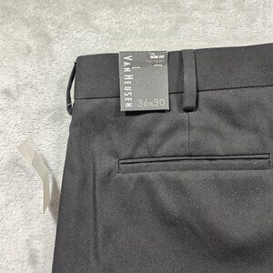 Van Heusen Pants Mens 36x30 Black Slim Fit Flat Front Dress Office Work Formal