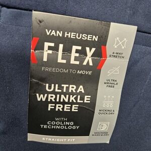 Van Heusen Pants Mens 36x32 Navy Straight Fit Flat Front Flex Ultra Wrinkle Free