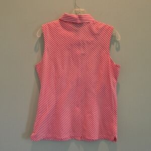 Van Heusen women's button down sleeveless blouse in pink and white stripes.