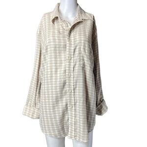 Van Heusen Plaid Short Sleeve Button Down Shirt Beige Medium
