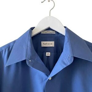 Van Heusen Poplin Blue Long Sleeves Cotton Blend Button Down Office Career Special Occassion Date Men’s Shirt SZ 34/35