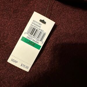 Burgundy color, has 4 buttons on neck, long sleeve. Brand new with tag.