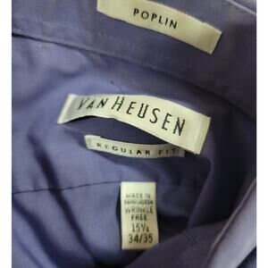Van Heusen Purple Blue Poplin Regular Fit Men's Dress Shirt 15 1/2 M Long Sleeve