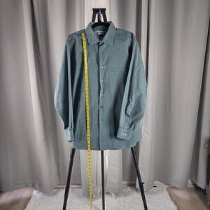 Van Heusen Regular Fit Men's Green Cotton Blend Dress Shirt Size 17 (34/35)