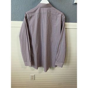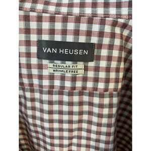Van Heusen Regular Fit Wrinkle Free Plum Plaid Collared Dress Shirt Size 17 1/2