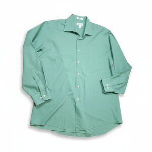Keywords: van heusen, wrinkle free shirt, poplin shirt, button down, dress shirt, mens large shirt, 16.5 neck shirt, 34/35 sleeve shirt, green shirt, office wear, business shirt, work shirt, long sleeve shirt, easy care shirt, formal shirt, collared shirt